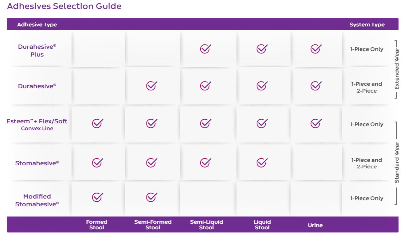 Modifiziertes Stomahesive ®, Stomahesive ®, Esteem™+ Soft und Flex
